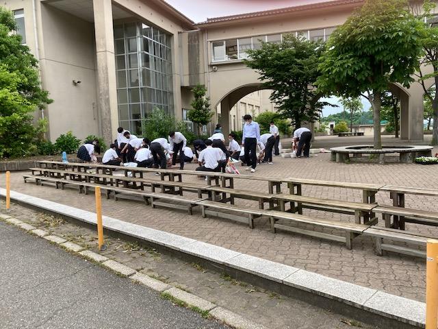 本日7限目にプランターの定植作業が行われました。各クラスから数人の代表者が集い、作業をする生徒、草むしりをする生徒様々でした。18日(土)は本校で花いっぱい運動が行われます。生徒の皆さんに感謝です。