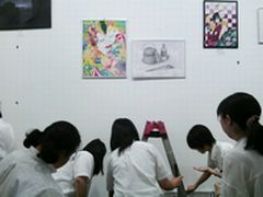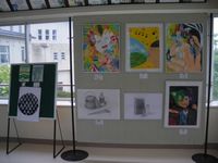 9月3日と4日は本校の文化祭でした。美術部の作品展示は、全校生徒の目に留まるよう体育館の渡り廊下。たくさんの生徒が足を止めて見ていました。