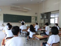 今日は白山市社会福祉協議会ボランティアセンターから職員の岩崎さんをお招きして福祉とは何かについてお話していただきました。4月から福祉についてさまざま角度から授業で学んでいるはずの生徒たちですが、いざ福祉とは何かを聞かれても「・・・・」。答えは一つではありませんが、岩崎さんのお話から世の中に住むすべての人の普段の暮らしが幸せになるようにしていくことだということがわかったのではないかと思います。