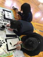 さて、女子バレーボール部の冬休み明けの部活動は1月5日からスタートしました。練習では、走る→トレーニング2種類→ボールアップ→ゲームをし、十分に身体をほぐすことから始めました。1週間空いていたこともあり、やはり体力は落ちていました。締めくくりに体育館で書初めを行い、1年間の目標を書きました。全員が仕上がるまでに1時間かかりました。