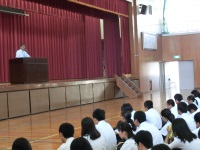 今日は1学期最後の日となりました。大掃除の後、各種大会の表彰伝達式が行われ、その後に終業式、退任式と続きました。終業式では校歌に続いて舟岡古調を歌った後、校長先生からやってしまった後悔は小さくなっていくがやらなかった後悔は日に日に大きくなっていくというお話があり、充実した夏休みを過ごせるように生徒へ向けて叱咤激励が送られました。退任式では3年間本校でALTとして勤務してくださったデニース先生が英語でお別れの挨拶をしてくれました。ジャマイカで皆さんと会えることを楽しみにしているそうです。