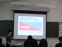 今日は北陸学院大学の虹釜(ごのかま)先生をお迎えして、先生が長年お勤めされていた児童養護施設を中心に、社会的養護が必要な子どもたちの存在や社会における問題点について、具体的な体験などを交えながらお話しいただきました。授業では一通り学習しましたが、生徒は児童養護施設や乳児院など言葉は知っていても内容をよく理解していなかったようで、先生のお話から具体的な実態が想像できたように思います。