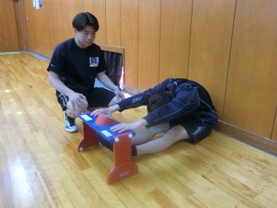 1年生から3年生までそれぞれが集中してテーピングの巻き方を理解しようと取り組み、横部さんの手本と見比べても同じように巻くことができていました。センスを感じますね。