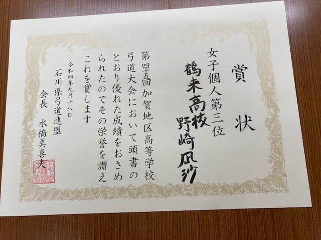 本校3年生の小西菜穂さんが、白山市ふるさと文学賞 暁烏敏部門で優秀賞に輝きました。