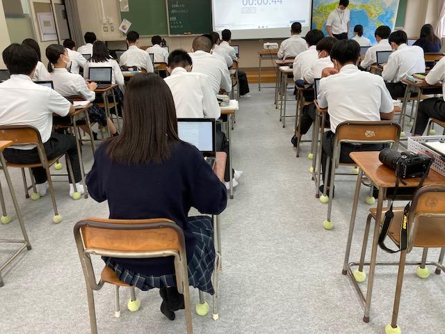 今年度より、本校でも1人1台端末が実現し、多くの授業で使われています。体育の授業でもお互いの動きを録画し見せ合って競技力の向上に努めています。