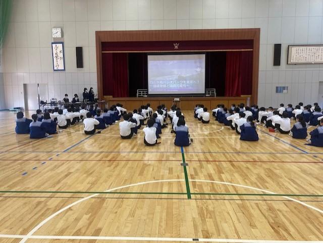 いよいよ今週末、第12回日本ジオパーク全国大会白山手取川大会が開催されます。本校も地域探究会の生徒を中心に参加します。本番を前に地元の鳥越中学校、朝日小学校、北辰中学校の生徒さんの前で発表する機会をいただきました。それぞれの学校の皆さんにもとても興味を持ってもらい、発表後にはたくさんの質問をいただきました。またワークショップでは共に白山ジオパークについて考えました。
