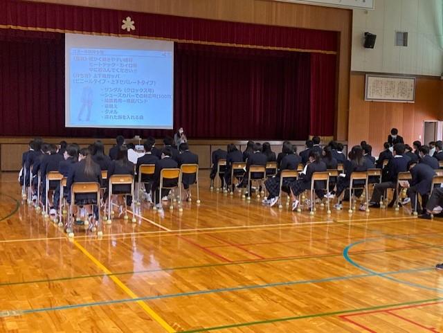 来週20日、21日から1年生を対象に就業体験が行われます。今日は事前指導が行われました。是非、就業の意義を学び将来に生かしてもらいたいです。