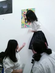 実はこの美術展、高校生が自らの手で作品を搬入し、展示作業までを行うのです。金槌を手に、脚立に上っての作業となるので、可憐な(?)女子高生たちは苦戦していました。