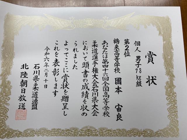 先週富山で開催されたインターハイスキー競技で、本校34Hの下康生選手が7位に輝きました。昨年度は悔しい思いをしましたが、見事その悔しさを晴らしました。また全国柔道選手権大会石川大会では、オール1年生の本校は団体戦こそ悔しい結果になりましたが、個人では1年生ながら14Hの國本君が2位、山浦さんが3位に輝きました。次年度からの活躍が楽しみです。特に山浦さんは中学校時代に柔道の経験がなく、本校の指導と山浦さん本人の努力でここまで来ました。本当に大したものです。
