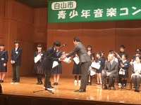 11月18日(土)に松任学習センターコンサートホールで行われた第36回白山市青少年音楽コンクール<歌唱部門>に、合唱部から5名の生徒が参加してきました。小学生から高校生まで79名参加の中、本校の男子生徒2名がともに高校生の部で銀賞に入賞しました!二人は夏休みのコンクールをはじめ、5人の中で一番長くソロコンの練習に取り組んできたので、練習の成果が結果に結びついてよかったです。また、そのうちの一人は金沢市のコンクールの本選も23日に控えているので、もうひと頑張りしてほしいと思います。