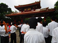 修学旅行最終日。朝は小雨が少しぱらついていましたが、首里城公園に到着する頃にはそれも止み、まず守礼門でクラスごとに写真を撮影した後、各自で園内を散策しました。世界遺産の首里城跡や、園比屋武御嶽石門(そのひゃんうたきいしもん)を目に焼き付け、琉球王国の文化・歴史を肌で感じました。