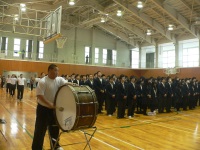 学校長、生徒会長の挨拶に引き続き、応援団の柔道部がTシャツ一枚で