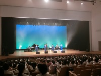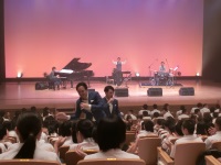 文化教室2018 投稿日時 : 2018/07/13 特活 カテゴリ:生徒会行事 本日午後、高文連文化教室が白山市鶴来総合文化会館クレインで行われ、jammin’ Zeb(ジャミンゼブ)というジャズ・コーラスをベースに、あらゆるジャンルの楽曲を爽やかに歌いこなす、スーパー・ヴォーカル・グループの演奏を聴くことができました。生徒が聴いたことのあるような曲もたくさんあり、さわやかなハーモニーを楽しむことができたと思います。