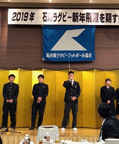 2月2日(土)、香林坊の金沢東急ホテルで開催された、「石川県ラグビーフットボール協会70周年記念式典」と「2019年石川ラグビー新年飛躍を期す会」にスタッフ3名と中川陸己キャプテンが参加しました。