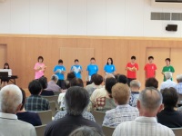 今日は和太鼓部と一緒に蔵山公民館で地域の方々を前に合同演奏会を開催させていただきました。前半和太鼓部の演奏の後、後半に6曲歌わせてもらいました。一昨日のコンクール疲れからか、満足のいく演奏はできませんでしたが、演奏後はたくさんの方から「よかったよ~」「上手やったよ~」「涙出そうになったわ」と声をかけていただいて、生徒もとてもうれしそうでした。今回の経験を励みに、来月クレインで行われる鶴来地区敬老会ではさらに完成度の高い演奏を披露できるように今後の練習を頑張りたいと思います。今回聴きに来てくださった皆様、本当にありがとうございました。
