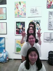 実はこの美術展、高校生が自らの手で作品を搬入し、展示作業までを行うのです。金槌を手に、脚立に上っての作業となるので、可憐な(?)女子高生たちは苦戦していました。