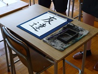 落款の石を渡され,不思議そうに見ていました。