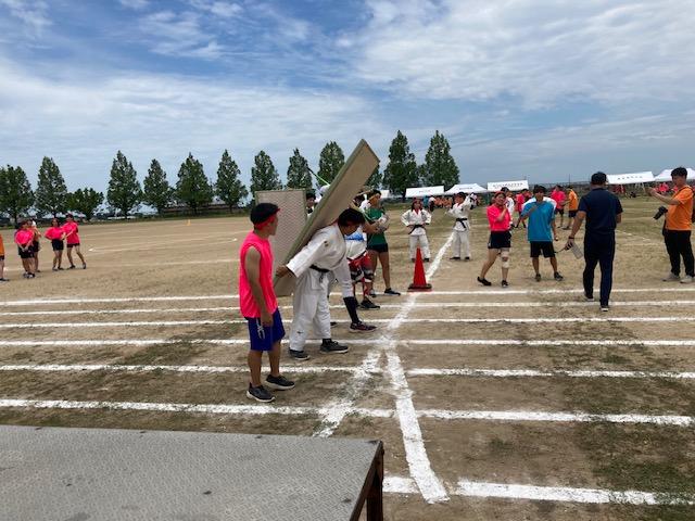 本日体育大会が開催されました。青団、桃団、オレンジ団の三つの団に分かれ、競い合いました。3年ぶりに各団の応援合戦も開催され、大いに盛り上がりました。青団の優勝となりましたが、各団ともよく頑張りました。生徒の皆さん、特に準備を手伝ってくれたスポーツ科学コースや部活動の生徒の皆さん、職員の皆さん、ご苦労様でした。