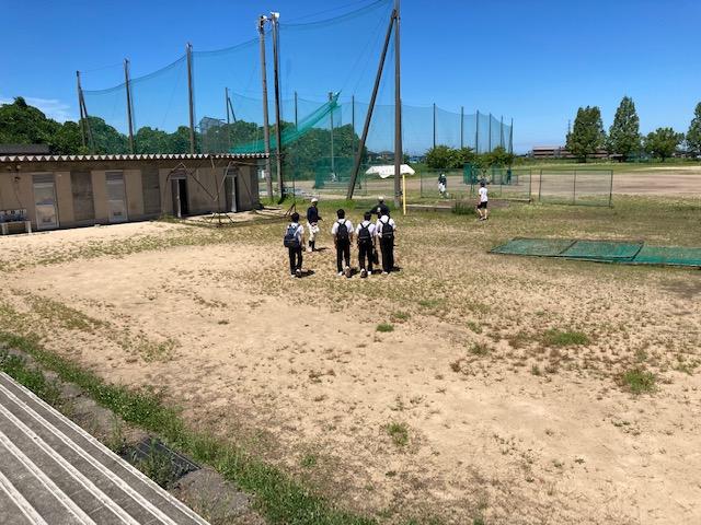 野球部員と一緒にグラウンドに向かう4人の中学生