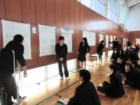 今日は1年生が10月に行った就業体験をポスターセッションで発表しました。みんな就業体験で苦労したこと、楽しかったこと、学んだことを、今後の学校生活で生かしたいと発表していました。生徒たちは和やかな雰囲気で楽しそうでした。教頭先生からもしっかりまとめられているとの講評をいただきました。