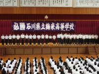 表彰伝達式では総体で入賞した柔道部や陸上部、中谷賞で準優勝したラグビー部など、数多くの成績が報告されました。次に野球部応援団リーダーのもと、北信越大会に出場するラグビー部と柔道部の壮行式が行われました。全員で校歌三題斉唱した後、応援リーダーのエールに合わせて全員で手拍子しました。最後のエールでは前に4人のリーダーが出てキレのあるダンス?も披露してくれました。「誇りあり学園鶴来」を胸に、ラグビー部と柔道部の健闘を祈ります!