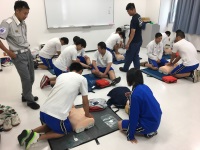 今日はスポーツ科学コースの3年生が鶴来消防署で上級救命講習を受講しました。1、2年次にも救命講習は受講していますが、今回は小児の救急普通救命講習(AED従事者)の内容に、小児・乳児の心肺蘇生、傷病者管理、外傷の応急手当、搬送法を加えたさらにレベルの高い講習になります。生徒は鶴来消防署の方の説明に耳を傾けながら真剣に取り組んでいました。