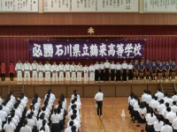 今日は6限後に北信越大会に出場する部活動の壮行式が行われました。直前に応援団を任された野球部だったそうですが、趣向を凝らした応援で、全校生徒を巻き込んで盛り上げてくれました。北信越大会に出場する陸上部、柔道部、弓道部、ラグビー部は、学校の代表としてだけではなく、石川県の代表として力を尽くしてきてください。