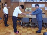 昼休み、校長室にて北信越大会に出場する部活動の代表が校長先生から激励費を手渡されました。どの部の生徒も、自分のベストが尽くせるようにと気合の入った抱負を述べてくれました。例年よりたくさんの部活動が北信越大会に参加するので大変喜ばしい限りです。