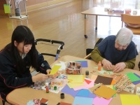 今日は、最後の施設実習に行ってきました。「利用者の方々の思い出に残ることがしたい!」と生徒の方から提案があり、事前に用意した鯛にちぎり絵でうろこをつけ、新春の壁画を一緒に制作してきました。お年寄りにやり方を説明しながら、自分たちも一生懸命になって壁画を完成させました。最後のお別れのあいさつでは感極まって涙する生徒も、、、。