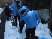 昨日、今シーズン初めての「除雪ボランティア」が出動しました。鶴来大国町の一人暮らしの高齢者のお宅で、民生委員の方から連絡をいただき、ラグビー部の男子8名、女子2名、計10名が参加しました。