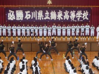 今日は6限目にインターハイに出場する柔道部と、今週末から夏の甲子園に向けて石川大会が始まる野球部の壮行式が行われました。学校長や生徒会長の激励のあいさつの後、ラグビー部応援団による息の合った演舞が行われました。暑い体育館の中でしたが、一般生徒も一緒になって校歌を3題歌い上げました。各部代表挨拶では、どちらの部も勝利への意欲を語ってくれました。全校で健闘を祈っています。