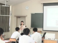今日は「社会福祉基礎」1学期最後の授業でした。その授業に、金城大学子ども福祉学科から岡部先生を招いて、保育士・幼稚園教諭の仕事というお題で講義していただきました。岡部先生自身が、大学に来る前は保育園、幼稚園ともにお勤めの経験があり、現場でのお話を交えながら、ただ子どものお世話をするだけではなく、愛情を注ぐことの大切さを教えてくださいました。