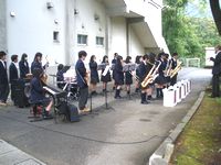 ジャズバンド部員がジャズ風にアレンジされた校歌を初披露しました。