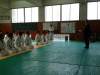 来賓に坂田実先生(坂田道場師範)をお招きし、学校長の挨拶のあと、