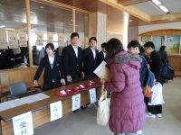 合格した新入生が保護者と一緒に来校し、諸注意や基礎力確認テストを行い、制服等の採寸・購入をしました。スリッパ購入の際には在校生もお手伝いに励んでいました。ジャズバンド部員もお見送りを兼ねて、演奏を披露していました。4月からは本校の一員として一緒に鶴来高校を盛り上げていきましょう!