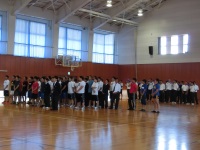 来月14日の体育大会に向けて、今日から各団に分かれての応援練習が始まりました。青団と白団はそれぞれに体育館に集まって練習。黒団と橙団は1、2年生のクラスを回って、3年生が1、2年生に応援の概要を説明していました。まだしっかりと応援が決まっていない団もあったようですが、時間を有効に使えるよう集中して頑張りましょう。