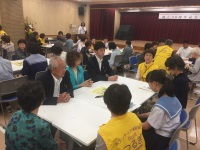 「世代間交流サロン」では中学生、高校生、高齢者の方がグループになって「つるぎ」をテーマに話し合いをしました。本校生徒は積極的に意見を発表していました。