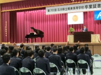 明日の卒業式を控え、前日の今日は同窓会入会式が行われました。始めに1,2年生も一緒に学生歌、応援歌を披露した後、同窓会長の酒井一朗様から入会許可を頂き、無事卒業生112名が同窓会に入会しました。今年から、本校12期生でもある、故・山岸勇元副知事の功績を称え設立された「山岸勇賞」の贈呈も行われ、鶴高生の模範となるような学校生活を送ったとして、32Hの三納さんが選ばれました。最後に31Hの伊藤くんが総代として新会員代表宣誓を行いました。