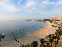修学旅行二日目は、はじめに美ら海水族館を訪れました。生徒たちは、ジンベエザメやマンタの巨大さに驚き、初めて見るマナティや南国の魚、ウミガメなどに大いに感動していました。また、イルカショー観覧の後に率先して観覧席のゴミを拾う生徒の姿はとても輝かしく見えました。