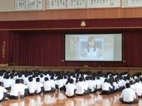 今日は7限目のLHで全学年対象に非行防止・防犯教室が行われました。前半は主にSNSに関するトラブルを中心とした犯罪について、具体的な事例をあげての説明がありました。最後にSNSで知り合った人と会わない、SNSに書き込む前にそれで人を傷つけたり自分の将来を傷つけたりすることがないか考え直すことが大切ということを特に強調されていました。後半はインターネットを中心とした防犯に関する注意喚起でした。いずれも生徒にとって身近な内容だっただけにどの生徒も真剣な顔つきで話に聴き入っていました。