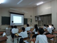 今日は金城大学の岡村先生を講師に招いて「援助とは」という題目でお話していただきました。はじめに、どのような時にどのような行動をとるかというチェックリストに答えたあと、親切と大きなお世話の違いや、援助に必要な3本の柱「指導」「お世話」「主体性の保障」ということについて説明していただきました。大学での授業のような深い内容でしたが、生徒にわかるように具体的な例えを入れながらかみ砕いてお話しくださいました。福祉に関することだけではなく、人付き合いにおいて大切なことも学ぶことができたと思います。