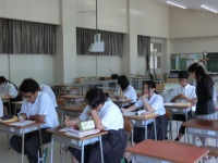 今日は1学期最後の日となりました。大掃除の後、各種大会の表彰伝達式が行われ、その後に終業式、退任式と続きました。終業式では校歌に続いて舟岡古調を歌った後、校長先生からやってしまった後悔は小さくなっていくがやらなかった後悔は日に日に大きくなっていくというお話があり、充実した夏休みを過ごせるように生徒へ向けて叱咤激励が送られました。退任式では3年間本校でALTとして勤務してくださったデニース先生が英語でお別れの挨拶をしてくれました。ジャマイカで皆さんと会えることを楽しみにしているそうです。