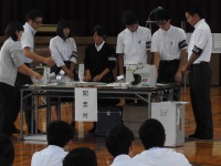 今日は2年生のあじさいタイム(総合的な学習の時間)に石川県と白山市の選挙管理委員会の職員の方をお招きして、選挙出前講座が開催されました。はじめに選挙の意義や制度についてのお話を聴き、次に実際に本番さながらの模擬選挙を行いました。開票作業も生徒によって行われ、選挙に対する理解が深まりました。18、19歳の投票率が低いとのお話もあったので、今回の経験を活かし、18歳になったらぜひ投票に行ってください。