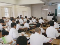 今日は3年生の就職希望者対象に就職激励会が行われました。学校長や学年主任からの激励の言葉の後、進路課の就職担当者から諸注意がありました。連休明けからはいよいよ就職試験が順次始まります。今までやってきたことが最大限に発揮できるよう、最後までやれることをやりきって頑張りましょう。