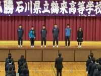 昨日に引き続きインターハイと国体に出場するスキー部の選手に対して、校長先生から激励費が手渡されました。校長先生からの激励の挨拶の後、クロスカントリーとアルペンの代表がそれぞれ激励費を受け取り、全国の舞台で全力を尽くすことを誓っていました。スキー部の活躍が鶴来高校の励みになります。ぜひ頑張ってきてください。