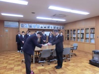 今日の昼休み、3月9、10日に新潟で開催される北信越新人大会に出場するラグビー部の主将に激励費が手渡されました。校長先生の激励の言葉の後に激励費を受け取った主将は、鶴来高校の代表として精一杯プレーしてくるという誓いの言葉を述べていました。本番直前には卒業式や高校入試が行われ、なかなか集中した練習ができないかもしれませんが、全力を尽くして頑張ってきて下さい。