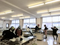 来週で今年度の授業も終了しますが、1年生の家庭基礎では現在全クラスで調理実習を行っています。1時間で準備、調理、試食、片付けまでを行うので、かなり手際よくやらないといけませんが、以前行った実習の反省なども生かし、どのクラスもスムーズに行うことができています。今回はピザ作りに挑戦しましたが、栄養や彩りだけではなく、オーブンの温度や切り分け方なども考えながら、一番美味しく食べられるように工夫を重ねました。生徒は担任の先生へも差し入れを行って、喜んでもらえたようです。