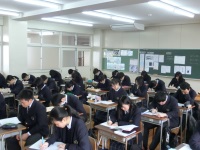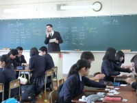 今週で今年度も終わりますが、生徒は元気いっぱいに授業を受けています。どの授業も、来年度へ向かいながらも考査が終わった後ということで、リラックスして楽しんでいる姿が多く見受けられます。中でもALTのニックが行う授業では英語を使いながら様々なコミュニケーションゲームやカルタなどで単語を覚える仕掛けが施されていて、生徒もとても楽しそうに英語に親しんでいます。