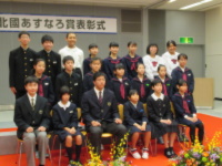 2003年度以降、地域の困りごとを解決するボランティア活動に、力をあわせて取り組む姿勢が評価され、今年度の北國あすなろ賞受賞が決まりました。生徒会および部活動を中心としたあいさつ運動、柔道部・ラグビー部・野球部などの運動部が行っている冬季除雪作業、ジャズバンド部・合唱部・和太鼓部・茶道部・地域探究会等が行っている訪問発表会など、地域に根差した地道な活動がみとめられた形です。学校を代表して前期生徒会長の辻 颯太さんが、表彰式に出席してきました。表彰されたのは人命救助や地域貢献、文化継承に尽力した個人や団体です。善行に励む若者が集まった会場は、まさにパワースポット!いただいた表彰状とりっぱな楯とともに、すがすがしい空気も持ち帰り、鶴来高校がさらなる躍進をとげるエネルギーをいただいたようにも感じました。詳しい内容はこちら→あすなろ賞.pdf