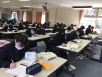 例年合宿の形で行っていますが、今年は新型コロナウイルス感染症の影響で、通いの2日間で行いました。朝8:20に学校を出発し、15:40に帰校するまで、各々でみっちりと学習に励んでいました。学習会開始前のベネッセコーポレーションによる講話や、昼食時の質問タイム等もあり、日帰りとはなりましたが例年以上に充実した内容で行うことができました。